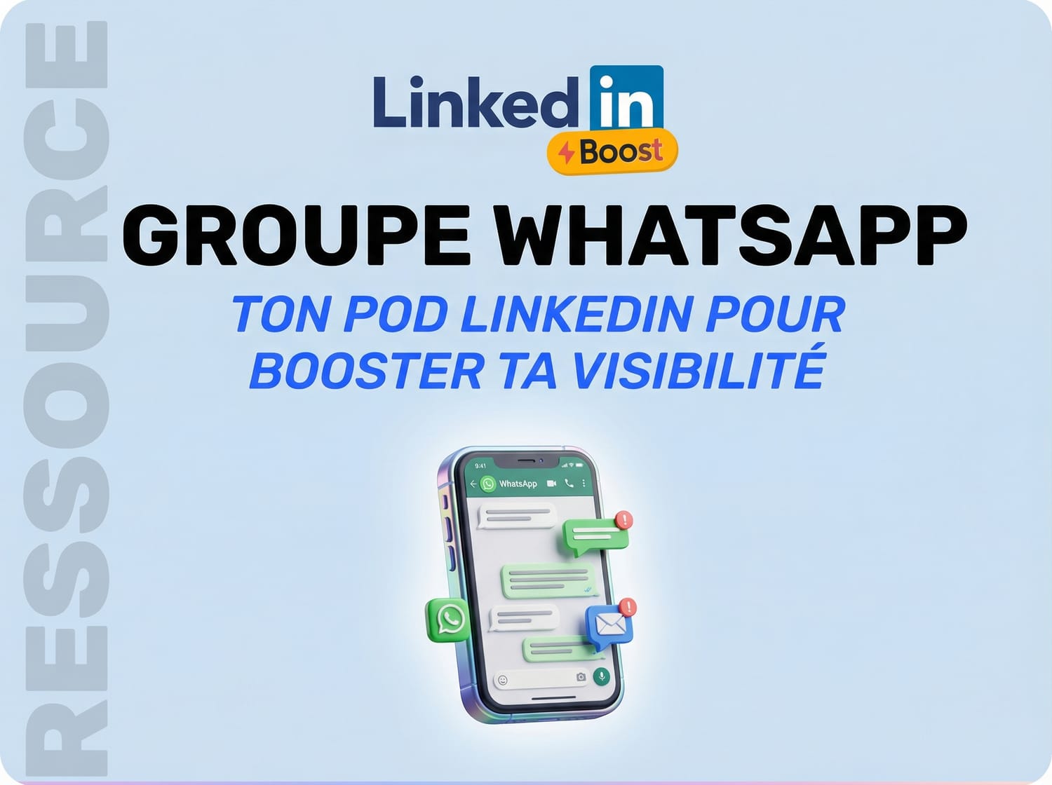 Rejoins le groupe WhatsApp privé des élèves, partage tes posts, reçois des likes et commentaires du groupe grâce à l'effet POD LinkedIn et booste ta visibilité naturellement