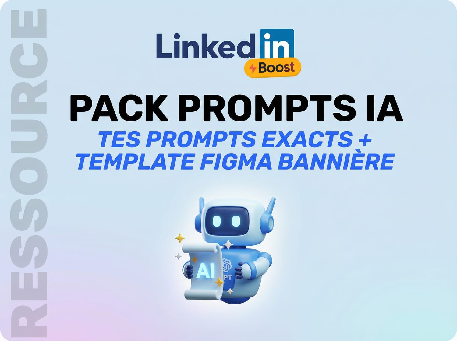 Tous les prompts IA que j'utilise au quotidien (photo de profil, description, idées de posts, rédaction, prospection) + le template Figma pour créer ta bannière pro en 10 minutes top chrono