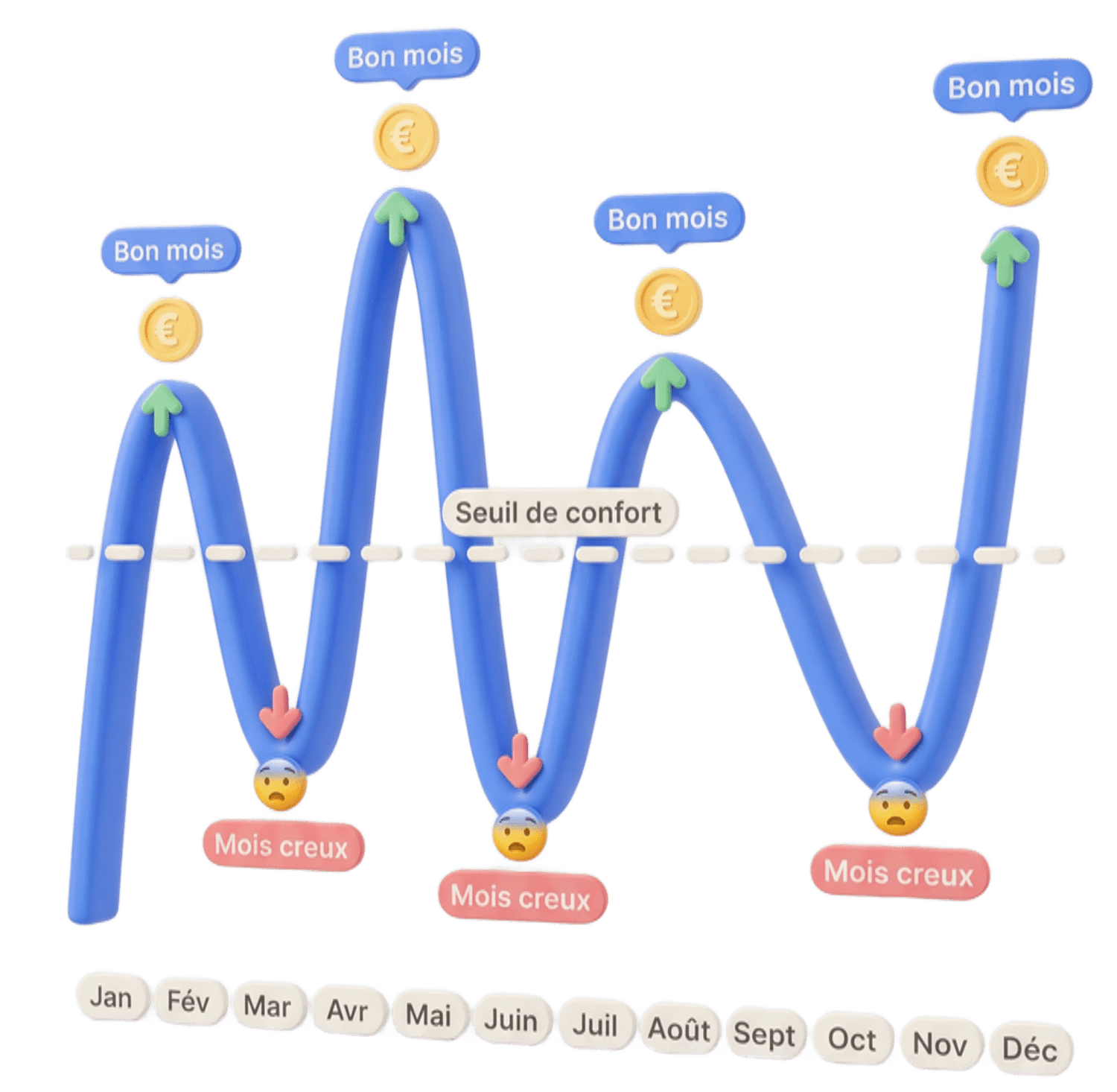 Tes revenus ressemblent à des montagnes russes : un bon mois, puis deux mois de galère, puis un bon mois, puis trois mois de stress.